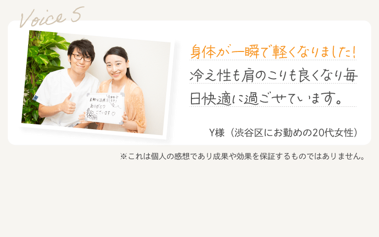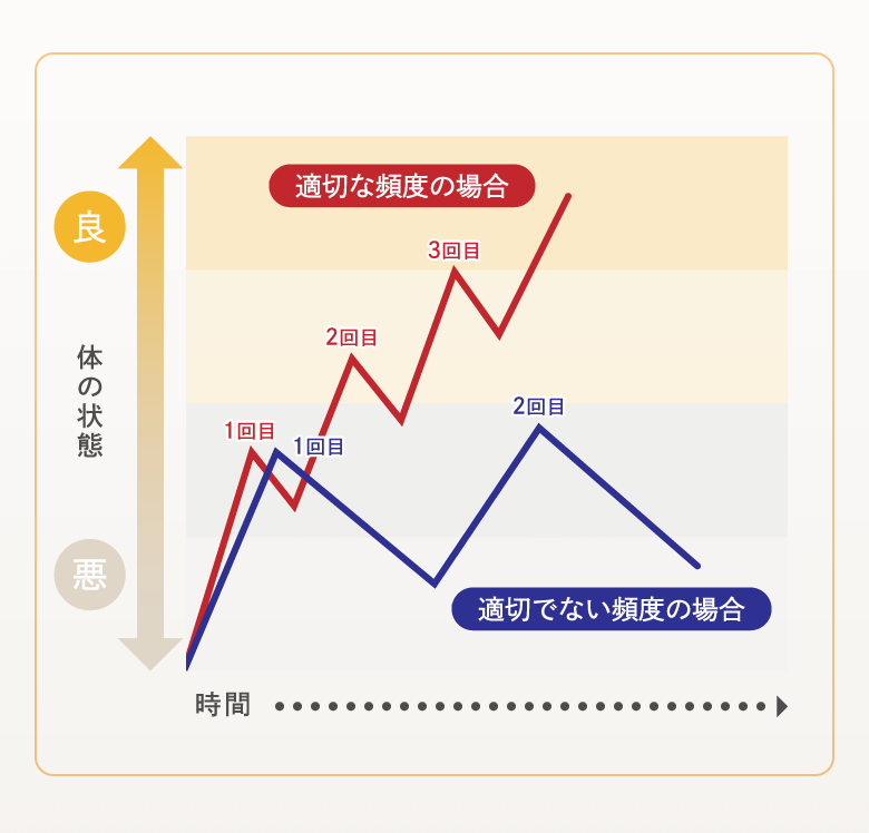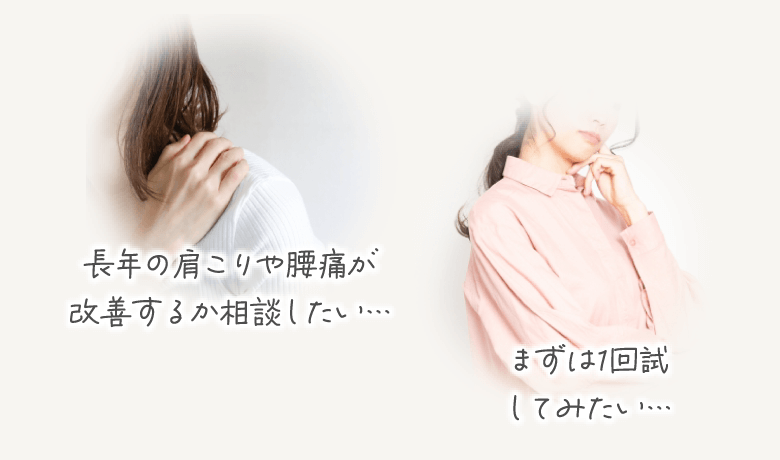 現在のお身体のお悩みの状態やご年齢、生活環境、職場環境、体質等の様々な要因にって施術回数は異なります。