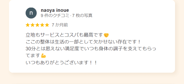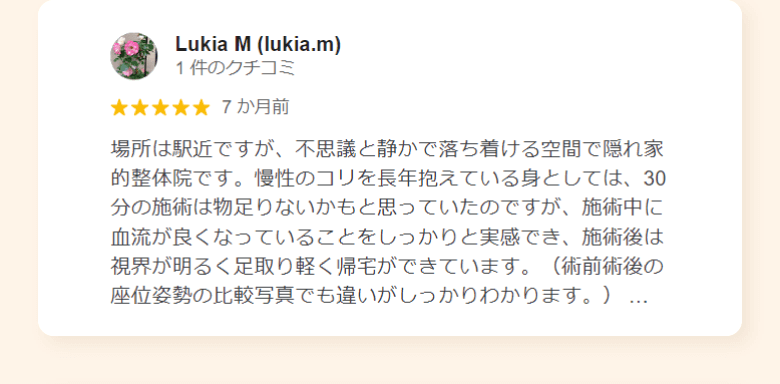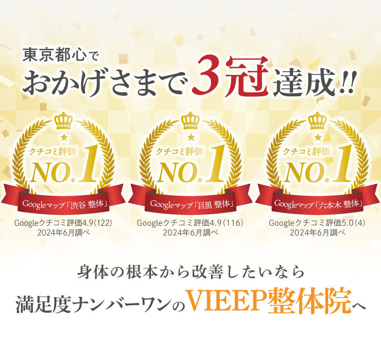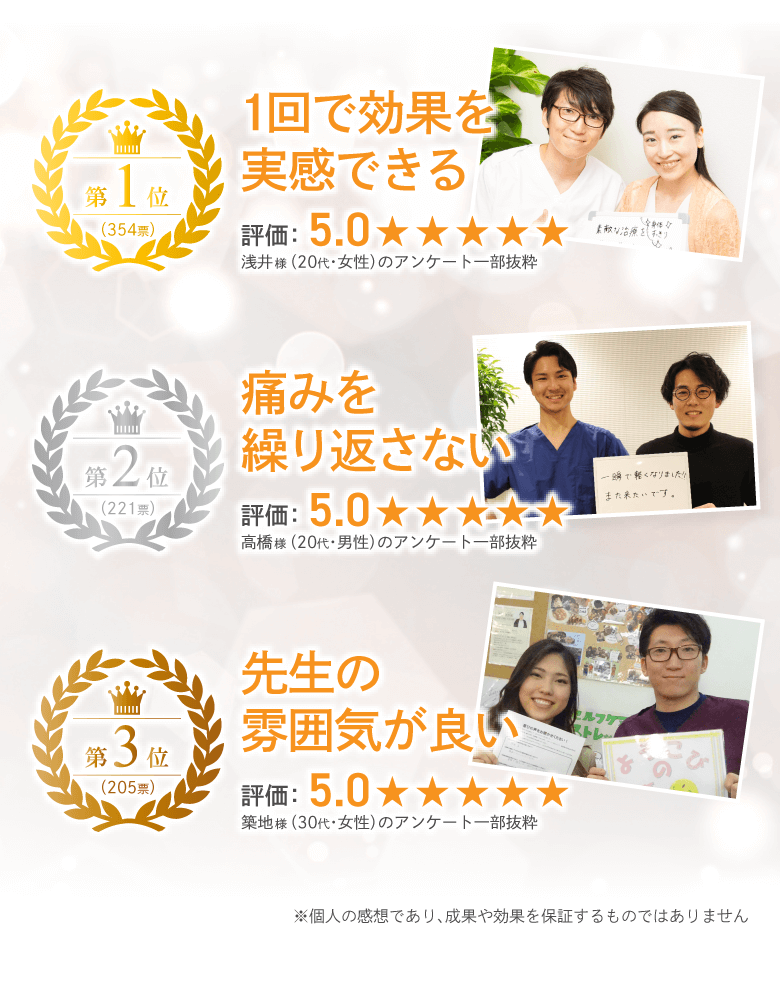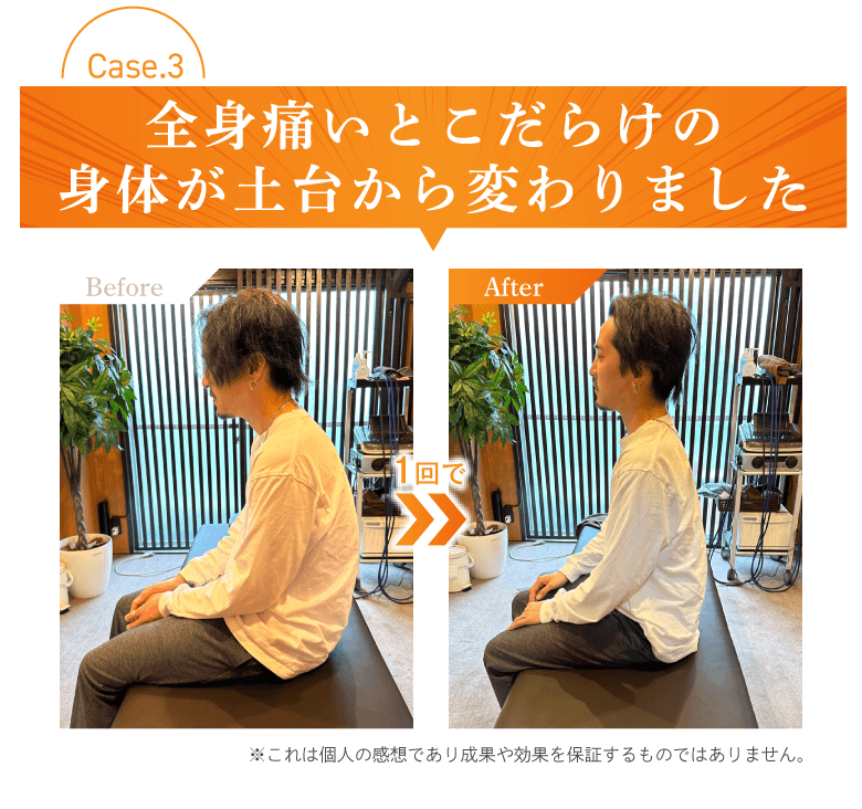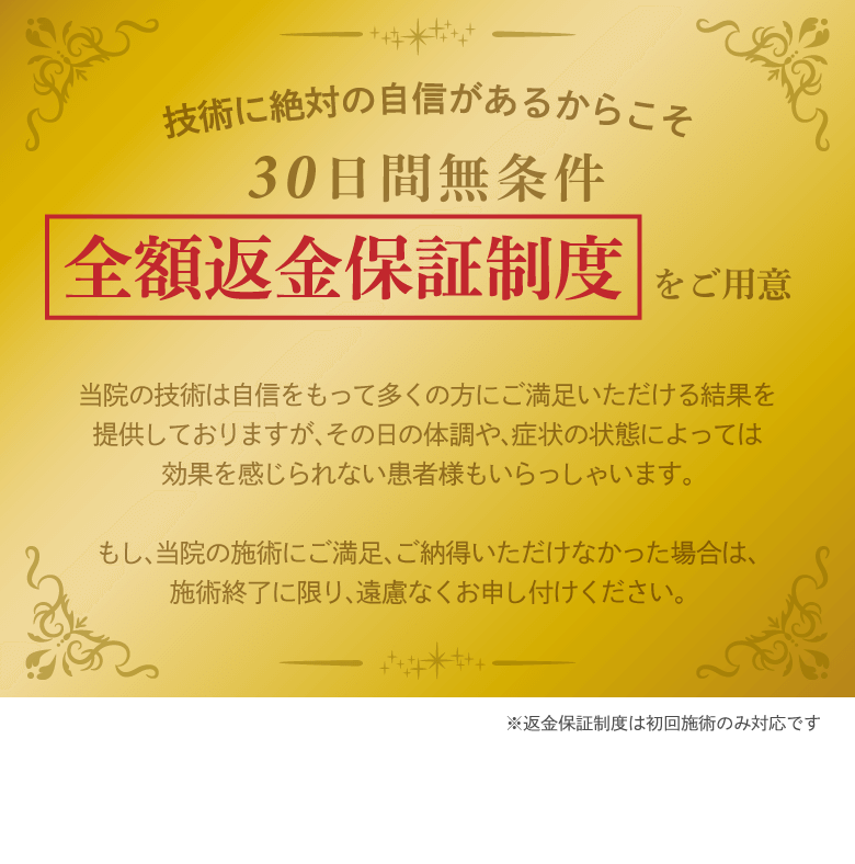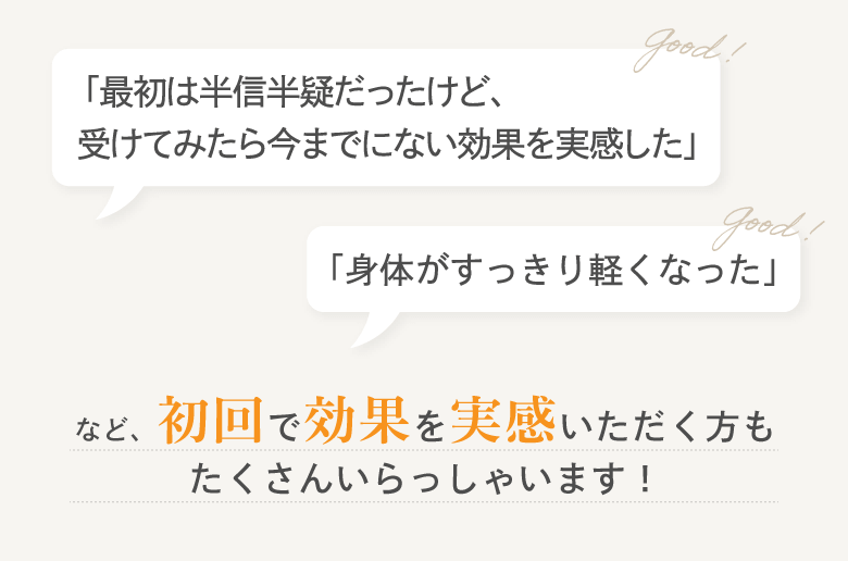 上記要因によって異なりますが、根本的な改善されてるお客様は4~6回で回復されてます。