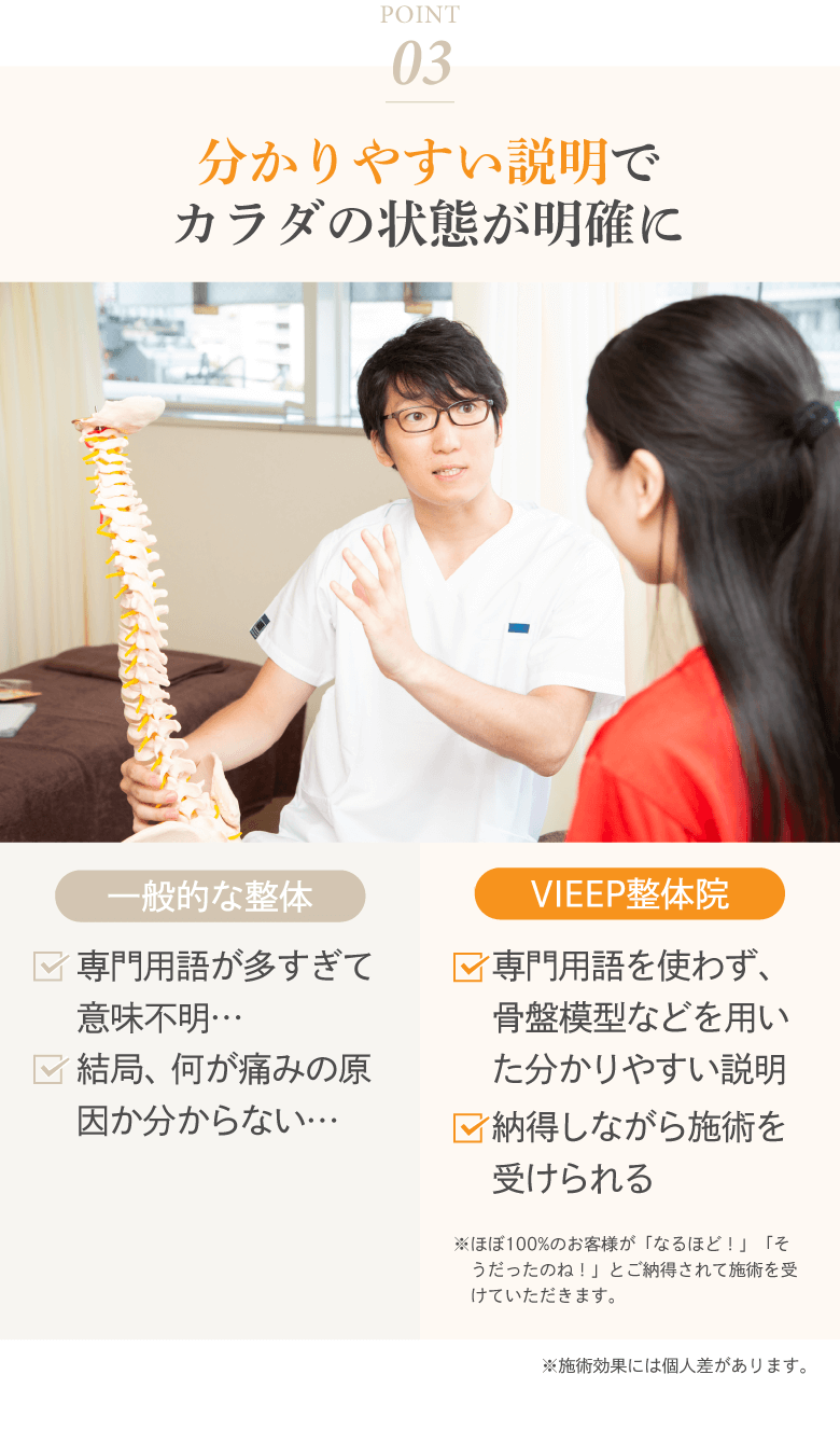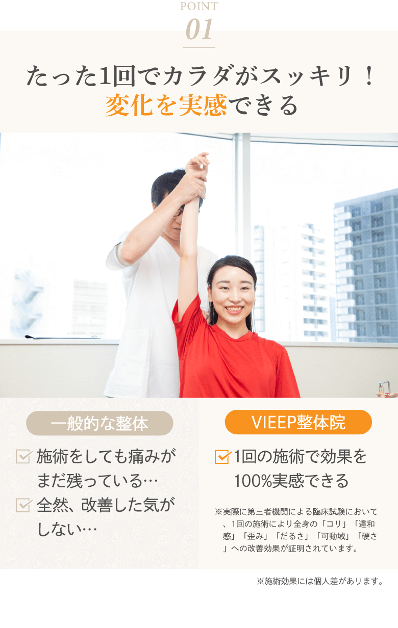 VIEEP整体院ではお客様の状態に合わせた姿勢内で、可能な施術を組み合わせることができますので、ご安心して施術を受けてください。