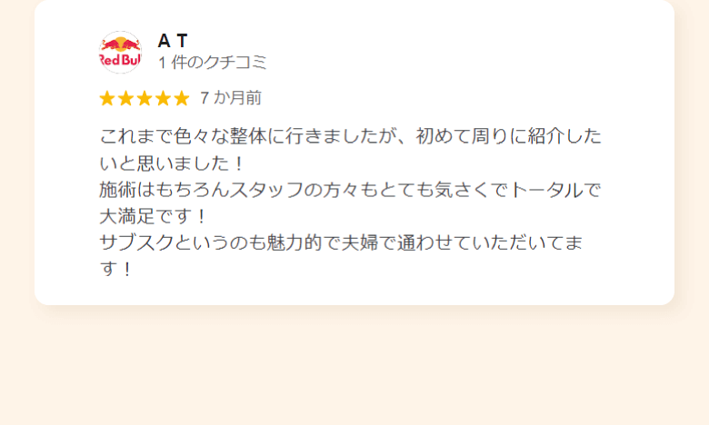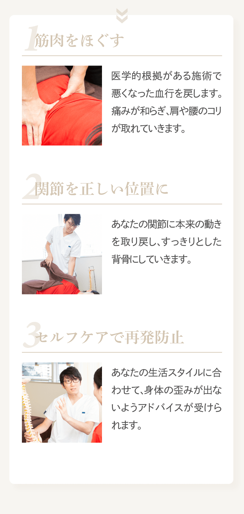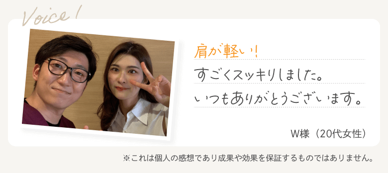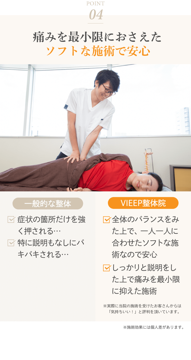 お客様のお身体に負担をかけないソフトな施術ですのでご安心して施術をお受けいただけます。