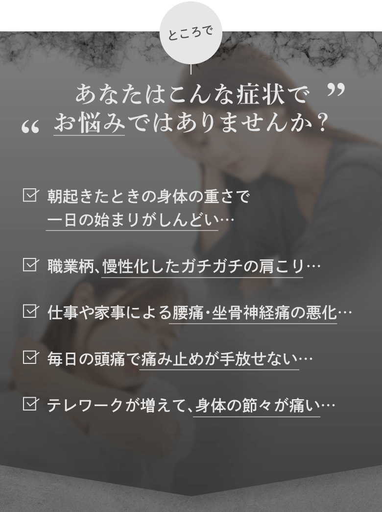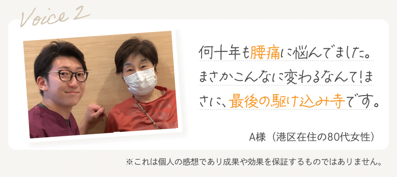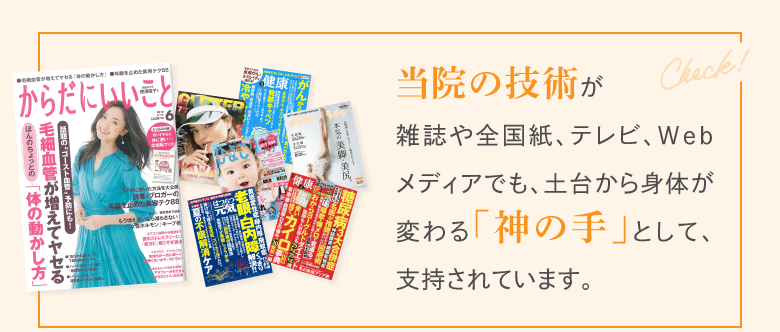 腰が痛い・お腹が痛い等の生理痛などにも効果がある施術を行っていますので、ご安心してお受けください。